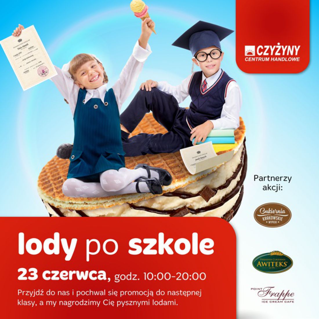 Akcja skierowana jest do uczniów szkół podstawowych, gimnazjów oraz szkół ponadgimnazjalnych, którzy w dniu zakończenia roku szkolnego pojawiš się w Centrum Handlowym Czyżyny i okażš aktualne wiadectwo szkolne z promocjš do następnej klasy lub wiadectwo ukończenia danej szkoły. Będš oni mogli odebrać voucher na 2 gałki lodów do zrealizowania w jednym z trzech punktów na terenie centrum handlowego: w Awiteksie, Krakowskich Wypiekach lub Caffe Frappe.