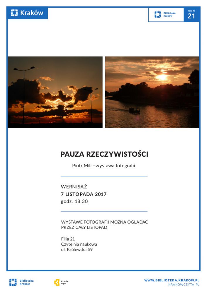 Piotr Milc, mieszkaniec Krowodrzy i pasjonat fotografii. Głównym tematem jego zdjęć sš krajobrazy, szczególnie ukochane góry, a także Kraków, jego rodzinne miasto, w którym odkrywa miejsca do których zwykle nie docierajš turyœci, a które sš równie warte obejrzenia.