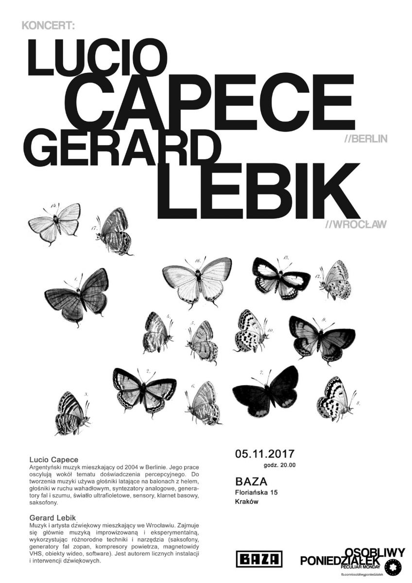 W działaniach Capece i Lebika dużš rolę odgrywa dowiadczanie czasu i przestrzeni a dwięk jest tutaj pewnego rodzaju narzędziem do badania, pogłębiania i zmieniania tego procesu. O znaczeniu dwięku i jego specyficznych właciwociach z artystami porozmawiajš Justyna Stasiowska, Marcin Barski i Konrad Gęca, dyskusję poprowadzi Piotr Tkacz.
