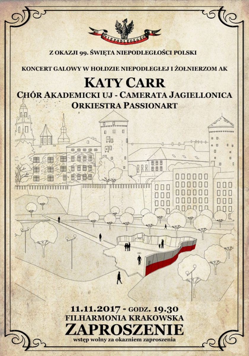 więtujmy wspólnie przy udziale znakomitej artystki Katy Carr, Chóru Akademickiego UJ i Orkiestry Passionart.