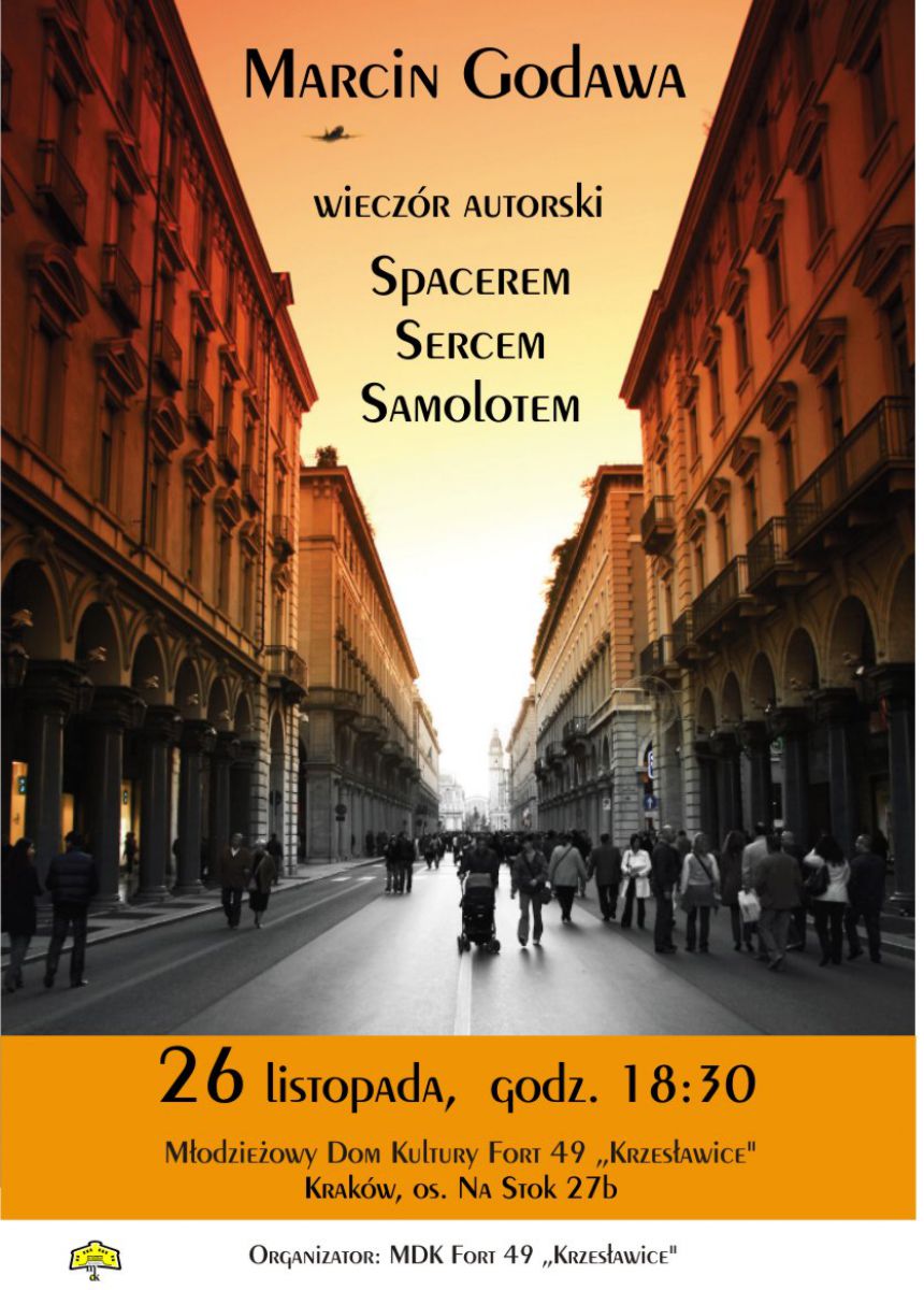Zapraszamy na wieczór autorski Marcina Godawy, który odbędzie się w dniu 26 listopada 2017, o godz. 18:30 w Młodzieżowym Domu Kultury Fort 49 „Krzesławice”, os. Na Stoku 27b.