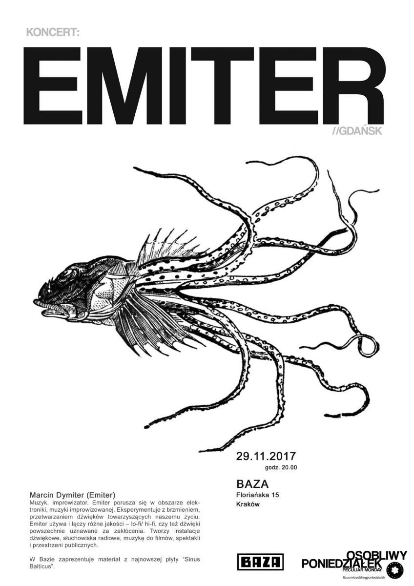 Muzyk, improwizator. Emiter porusza się w obszarze elektroniki, muzyki improwizowanej. Eksperymentuje z brzmieniem, przetwarzaniem dwięków towarzyszšcych naszemu życiu. Emiter używa i łšczy różne jakoci lo-fi/ hi-fi, czy też dwięki powszechnie uznawane za zakłócenia. Tworzy instalacje dwiękowe, słuchowiska radiowe, muzykę do filmów, spektakli i przestrzeni publicznych.