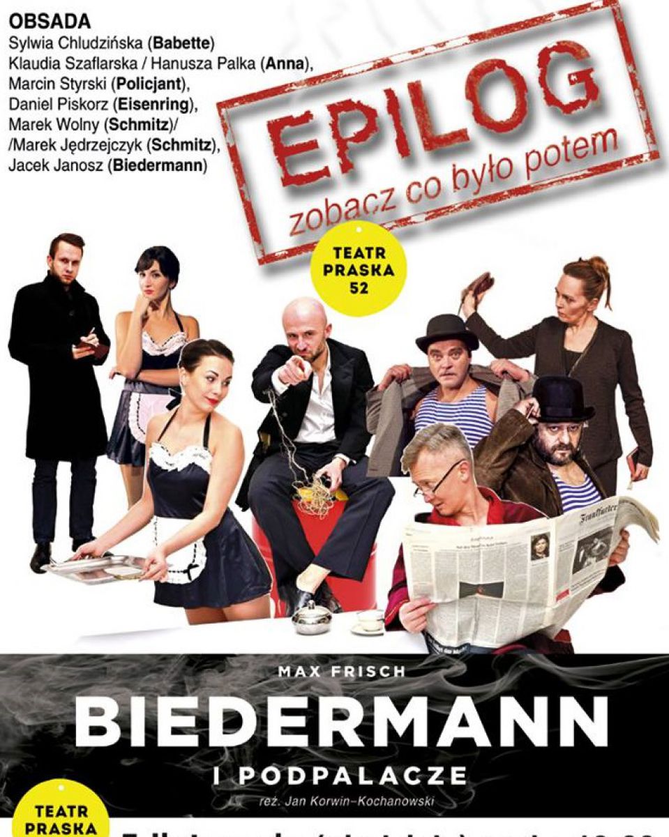 Tak mniej więcej przedstawia się historia pana Biedermanna. Spektakl z zaskakujšcym,kryminalnym finałem, dawkš czarnego humoru oraz ze wietnie napisanymi rolami.
