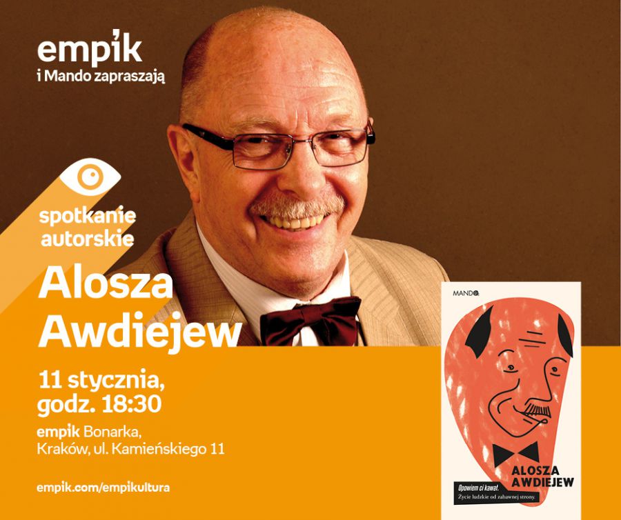 Alosza Awdiejew od 40 lat zbiera dowcipy. Kilkaset z nich można przeczytać na kartach wydanej niedawno ksišżki jego autorstwa pt. „Opowiem ci kawał. Życie ludzkie od zabawnej strony” (Mando). Kilka żartów opowie zapewne na żywo podczas spotkania