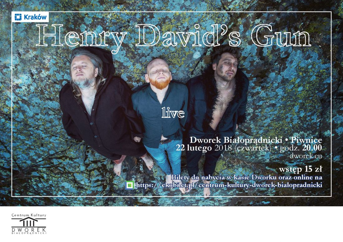 Henry David to trio: Wawrzyniec Dšbrowski, Maciej Rozwadowski i Michał Sepioło. Możecie ich kojarzyć z poprzednich projektów takich jak Letters From Silence, Frozen Lakes czy Nocny SuperSam. Każdy z muzyków gra na kilku instrumentach. Henry Davids Gun to zespół z pogranicza gatunków singer-songwriter, indie-folk oraz folk-rock. Trio pozostaje wierne czemu, co można okrelić jako analogowo-akustyczne podejcie do muzyki.