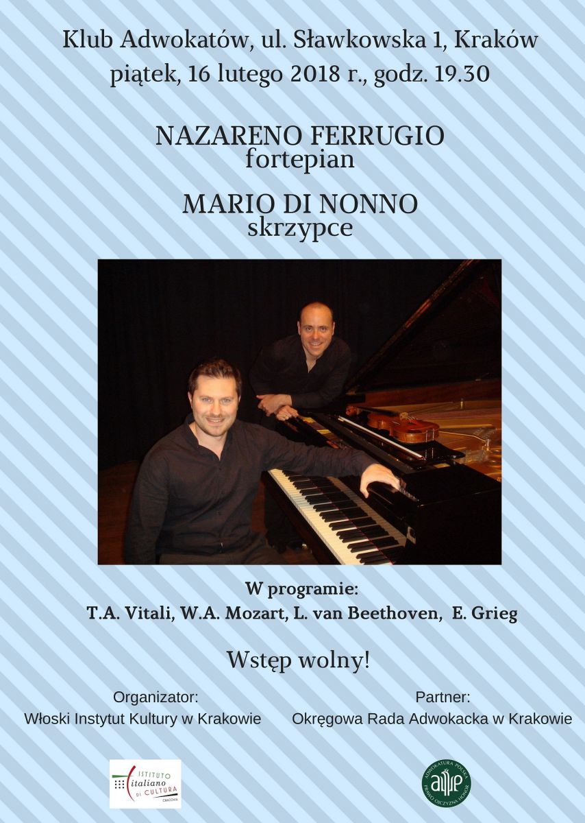 https://adwokatura.krakow.pl/aktualnosci/koncert-kameralny-nazareno-ferruggio-fortepian-mario-di-nonno-skrzypce-1462.html