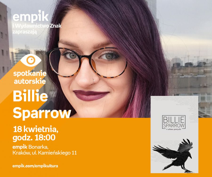 Poetycki gos modego pokolenia. Wiersze, jak w soczewce, skupiaj najsilniejsze emocje i ukazuj problemy pulsujcej rzeczywistoci. Pdzcy wiat nas zmienia, ale uczucia pozostaj takie same. Jak o nich mwi? Arkusz poetycki (Wydawnictwo Znak) przynosi szczer i poruszajc odpowied na to pytanie. Zapraszamy na spotkanie z Weronik Mari Szymask, w Internecie znan pod pseudonimem Billie Sparrow. Nigdy w peni nie zachowuje powagi ani cakowicie nie artuje. Lubi rozmawia z ludmi, pi herbat i oglda memy.