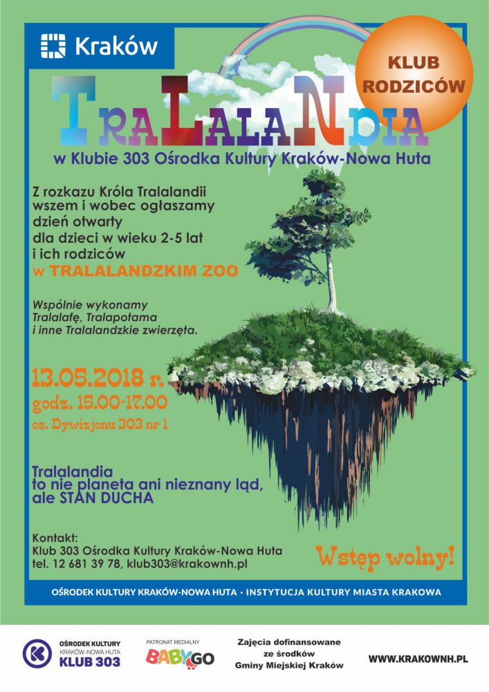 Klub 303 Orodka Kultury Kraków-Nowa Huta (os. Dywizjonu 303 nr 1) zaprasza na kolejnš wyprawę do wiata Tralalandii w niedzielę 13 maja o godz. 15.00. Tralalandia powoli odzyskuje swój dawny wyglšd