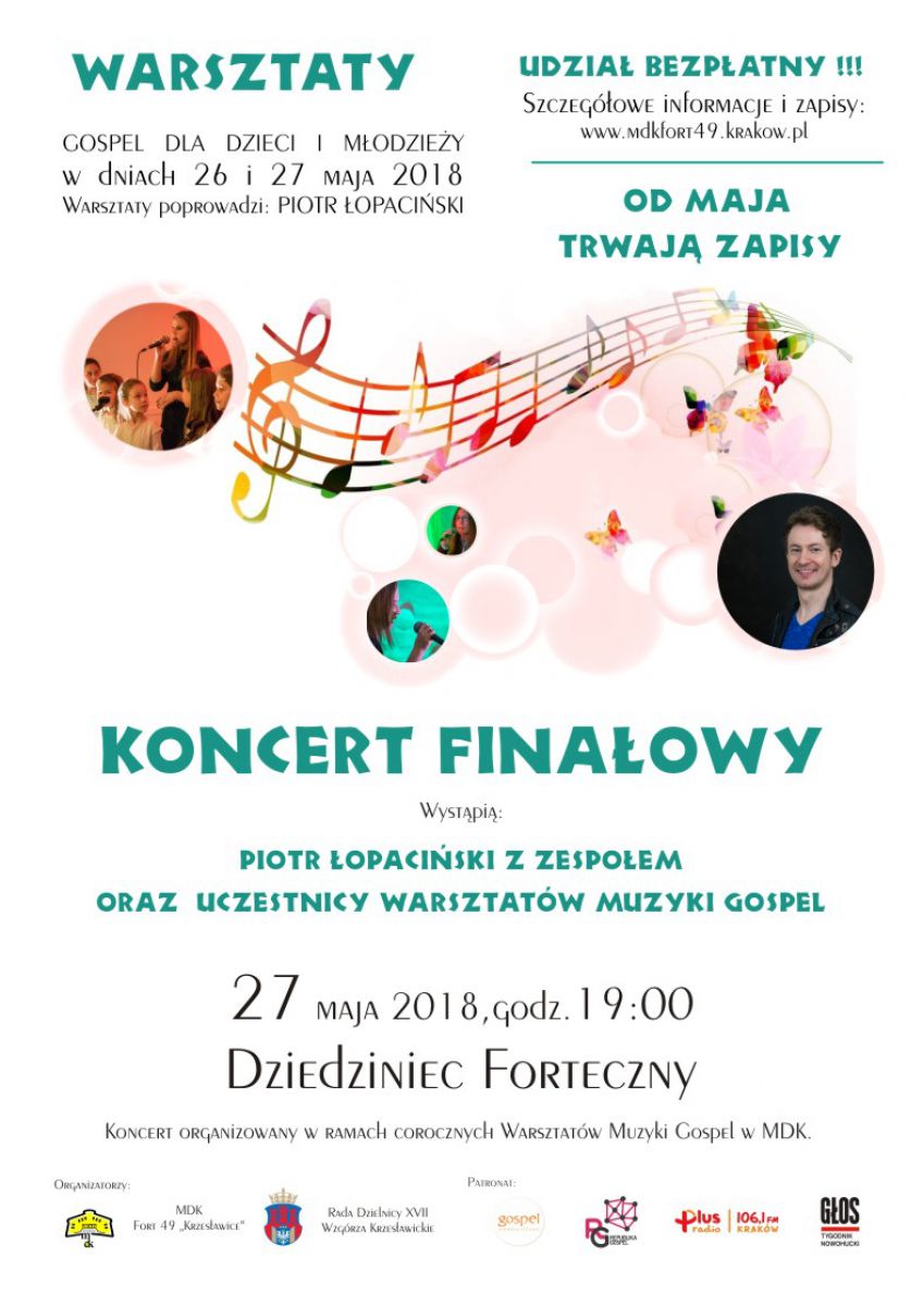 Warunkiem udziału w warsztatach jest przesłanie zgłoszenie na adres: gospel2018@mdkfort49.krakow.pl