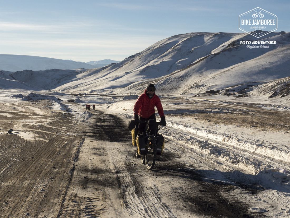 Trzy dziewczyny, dwóch chłopaków, pięć rowerów i syberyjska zima. Tak wyglšdał 8. etap sztafety rowerowej dookoła wiata Bike Jamboree. W niecały najbardziej wišteczny miesišc w roku - grudzień - przejechali blisko 1200 kilometrów przez góry Ałtaj. więtego Mikołaja przyjmowali w namiotach rozbitych w przyczepie tira, na granicy rosyjskiej - zamknięci za drutem kolczastym - spędzili wigilię Bożego Narodzenia, a nowy 2018. rok przywitali w Mongolii. I to dwukrotnie.