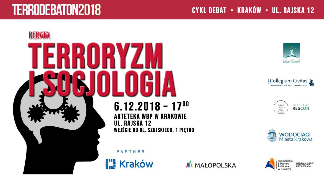 Zapraszamy na kolejne spotkanie w cyklu "Terrodebaton 2018", która odbędzie się 6.12.2018 o godz. 17.00 w Artetece przy ul Rajskiej ( wejcie od ulicy Szujskiego, I piętro). Tym razem spotkanie powięcone będzie socjologii terroryzmu.