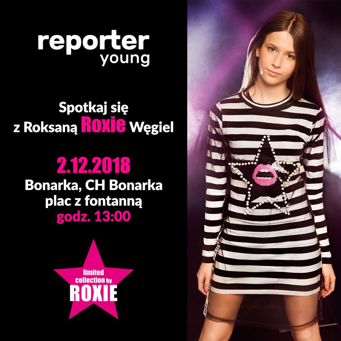 W zwišzku z promocjš limitowanej kolekcji Reporter Young, której Roxie jest współautorkš, odbędzie się w Bonarce koncert, podczas którego młoda artystka zapiewa swoje najpopularniejsze piosenki. Obok Roxie na scenie zobaczymy grupę tanecznš, która wzbogaci całe widowisko. Po koncercie wszy-scy fani Roxie zostanš zaproszeni do salonu Reporter Young, gdzie będzie można przy ciance zrobić sobie wspólne selfie z artystkš i zdobyć jej autograf.