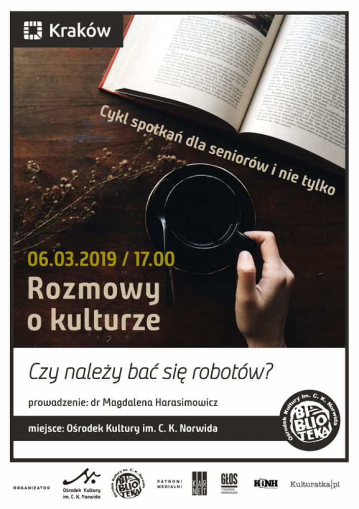 Choć o kulturze powiedziano już wiele, refleksja nad niš jest wcišż aktualna. Biblioteka Oœrodka Kultury im. C. K. Norwida zaprasza wszystkich chętnych do dyskusji nad szeroko pojętš kulturš oraz zdarzeniami, które wpłynęły na bieg historii, a których œlady sš nadal widoczne. Spotkania będš odbywać się cyklicznie w pierwsze œrody miesišca o godzinie 17.00 i będš miały charakter rozmowy kierowanej, podczas której uczestnicy dowiedzš się ciekawych faktów, a także będš mogli przy herbacie podzielić się swoimi spostrzeżeniami na temat bieżšcego zagadnienia. Mimo iż spotkania organizowane sš głównie z myœlš o seniorach, mile widziane będš także osoby dorosłe w różnym wieku. Jak bowiem stwierdził Benjamin Franklin: „nie starzeje się ten, kto nie ma na to czasu”.