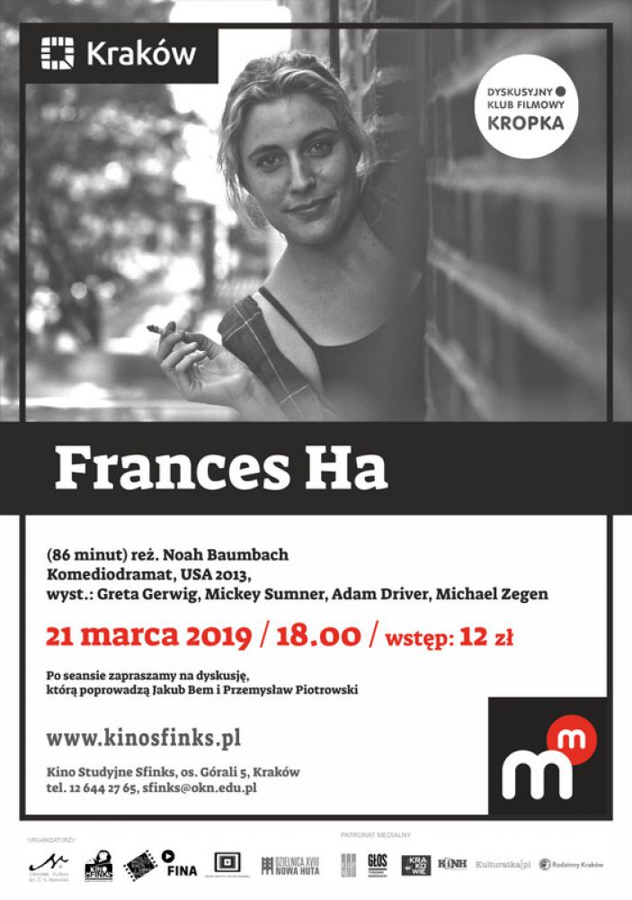 Pokaz filmu Frances Ha. Po seansie odbędzie się dyskusja, którš poprowadzš Jakub Bem i Przemysław Piotrowski. Wstęp: 12 zł.