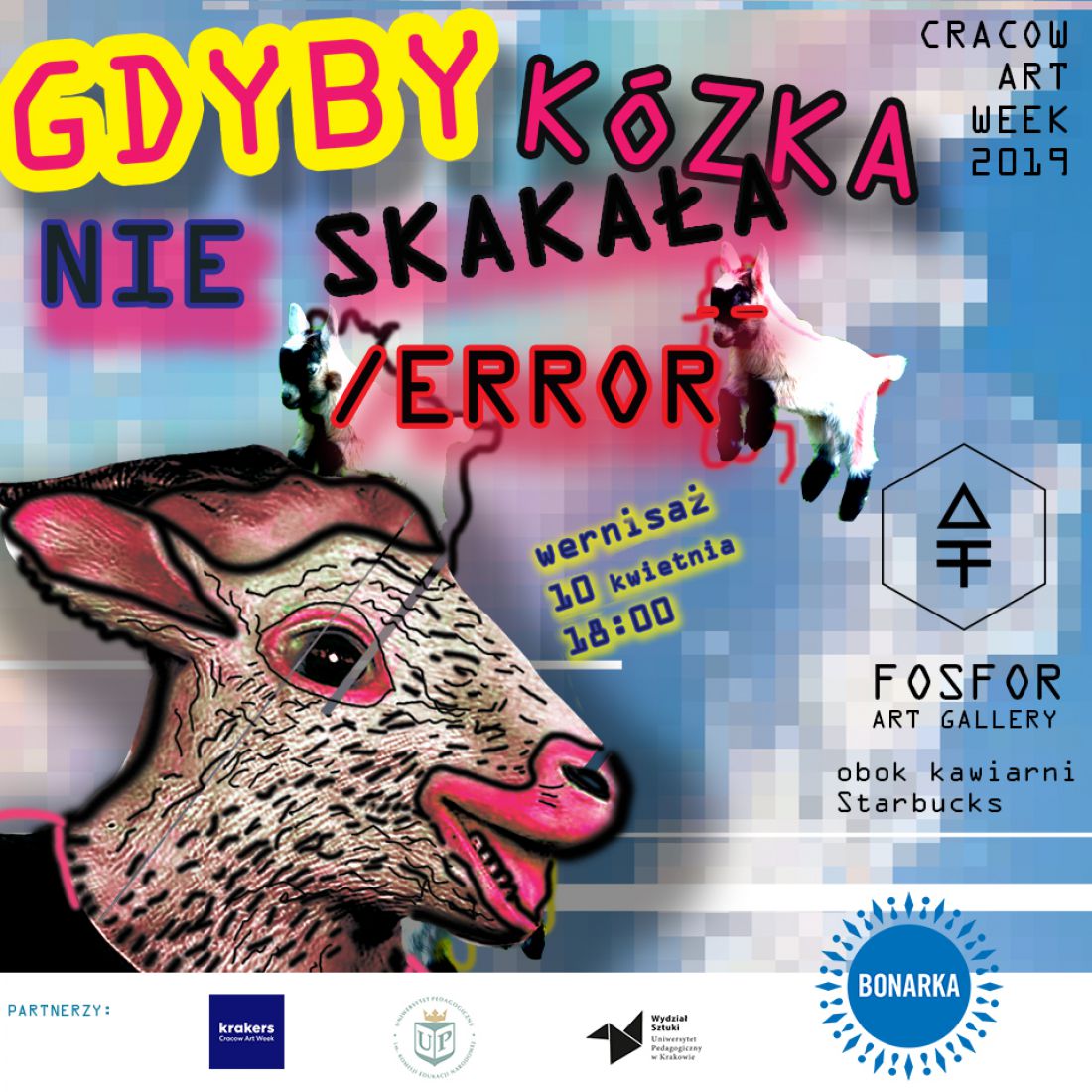 Fundacja Wschód Sztuki, organizator Cracow Art Week KRAKERS, Wydział Sztuki Uniwersytetu Pedagogicznego oraz Bonarka zapraszajš na wystawę „Gdyby kózka nie skakała…/ERROR” od poniedziałku do soboty oraz w niedzielę 28 kwietnia, w godz. 14:00 - 19:00. W czasie jej trwania zostanš zaprezentowane dzieła stworzone w duchu tzw. estetyki błędu, Glitch Art. Skazy, trzaski, zniekształcenia i niezwykle modyfikacje kolorystyczne – to cechy, które wyróżniajš ten nurt we współczesnej sztuce.