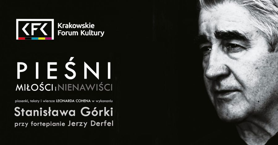 Krakowskie Forum Kultury serdecznie zaprasza na spektakl Pieni Miłoci i Nienawici w adaptacji i reżyserii Sławomira Gaudyna na podstawie prozy, wierszy i piosenek Leonarda Cohena (tłumaczenie Macieja Karpińskiego, Macieja Zębatego oraz Wojciecha Fladzińskiego - ksišżka Różne postawy).