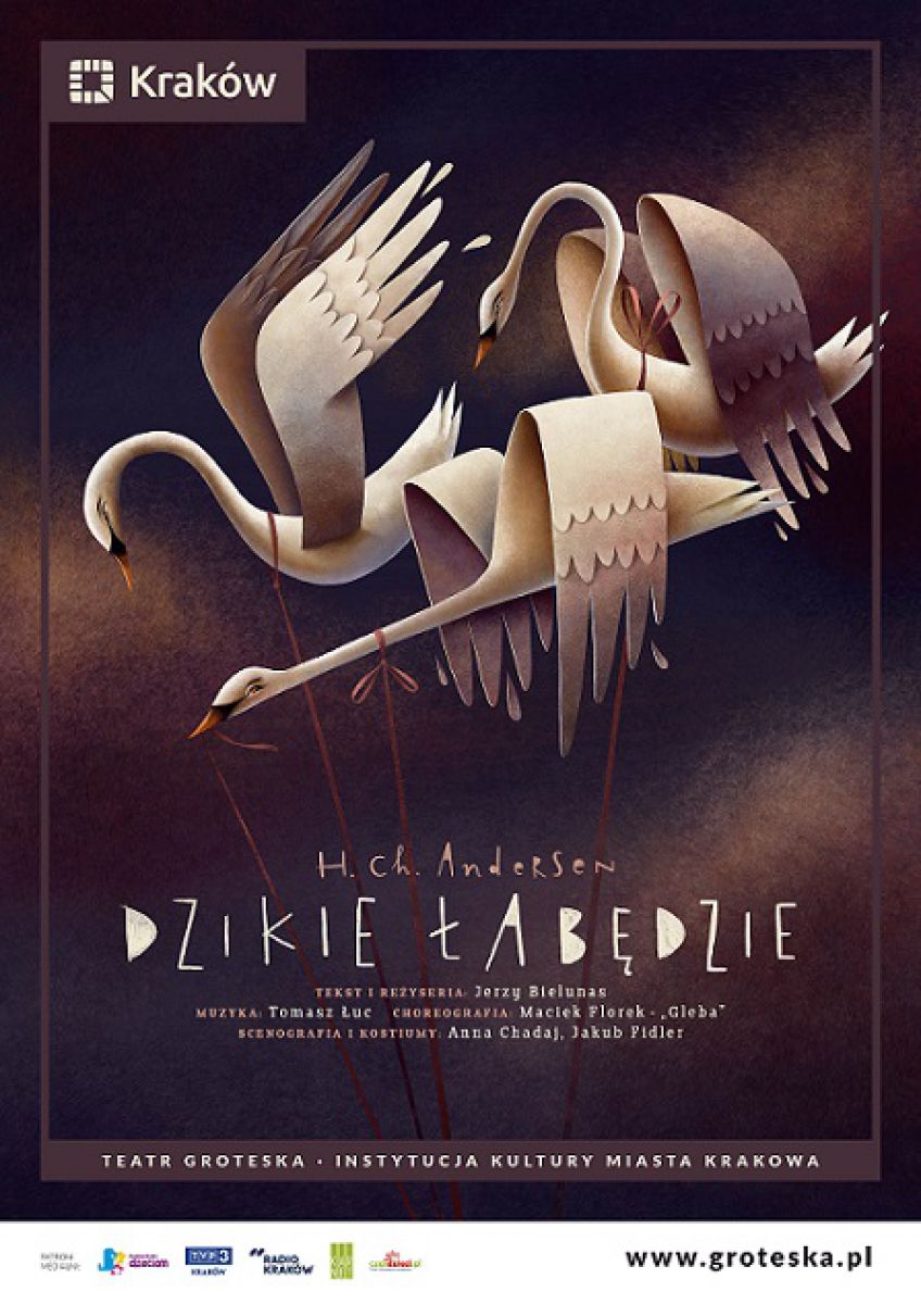 W przedstawieniu DZIKIE ŁABĘDZIE" prastare elementy i motywy baniowe zostajš pokazane we współczesnej scenicznej formie zawierajšcej ciekawe rozwišzania inscenizacyjne oparte na animacji. Tę historię opowiada na swój własny sposób reżyser Jerzy Bielunas.
