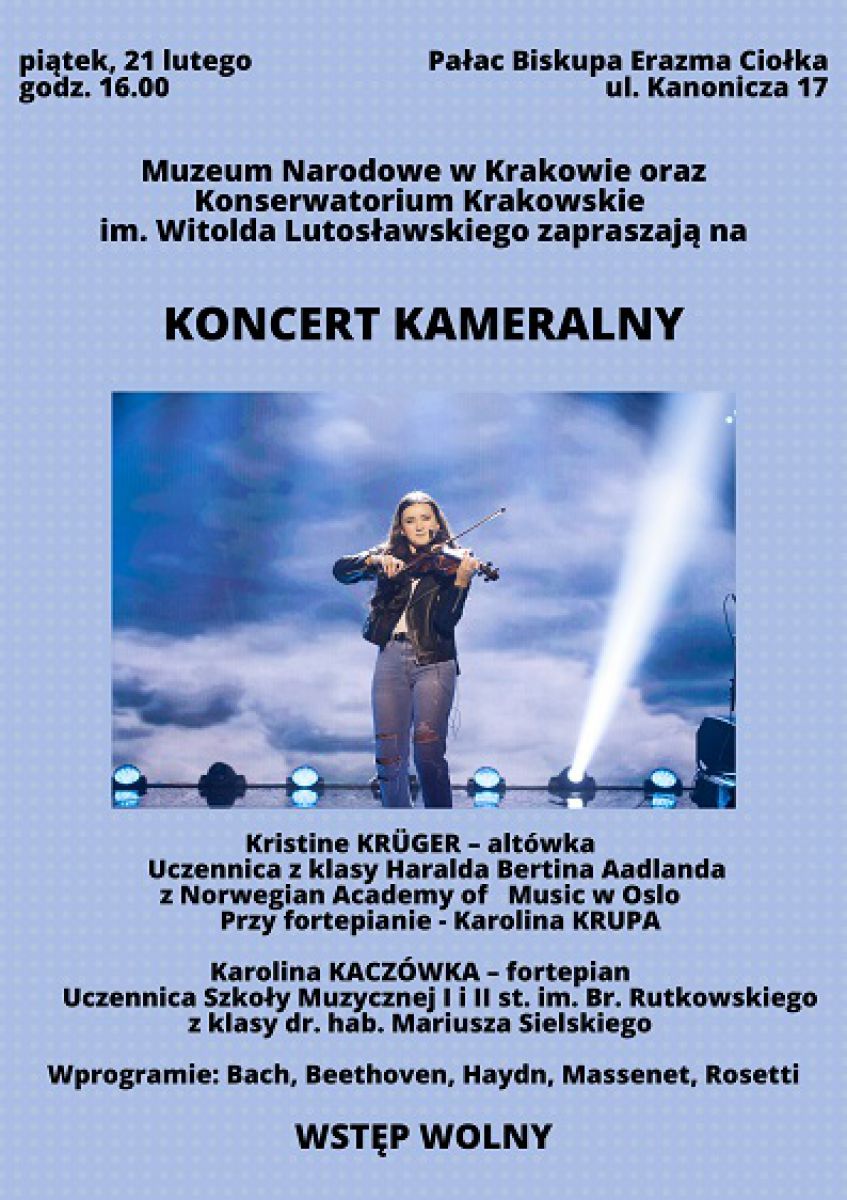 Muzeum Narodowe w Krakowie oraz Konserwatorium Krakowskie im. W. Lutosławskiego zapraszajč na koncert kameralny: