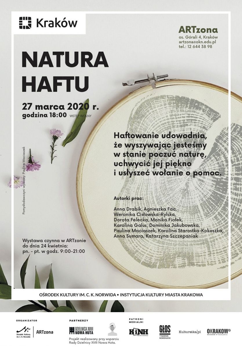Haftowanie udowodnia, że wyszywajšc jestemy w stanie poczuć naturę, uchwycić jej piękno i usłyszeć wołanie o pomoc. Natura haftu to wystawa przedstawiajšca haftowane przekroje pni drzew, z wplecionš pomiędzy słoje historiš zwišzku hafciarki z przyrodš. Haft jest dla artystek naturalny, ale bywa, że zwišzek ten czasem staje się barwny i przepełniony szczegółami, a czasami jednak okazuje się być skomplikowany, nieoczywisty, nierealny.