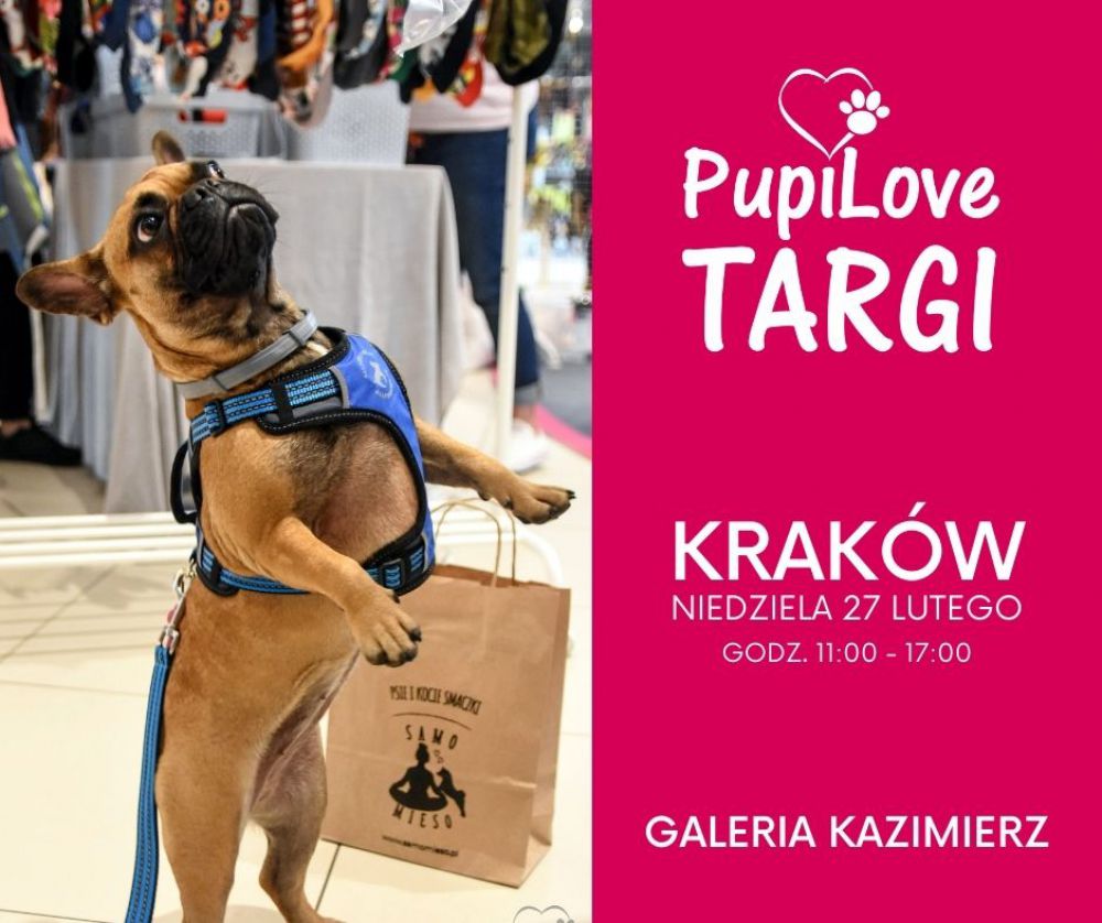 PupiLove Targi w Krakowie odbędš się w niedzielę 27 lutego na terenie Galerii KAZIMIERZ (poziom 0). Targi możecie odwiedzić w godzinach 11:00 - 17:00.
