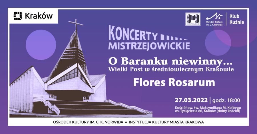 Koncerty Mistrzejowickie po długiej przerwie wracajš na żywo! Zapraszamy na koncert „O Baranku niewinny… Wielki Post w œredniowiecznym Krakowie” w wykonaniu Zespołu Flores Rosarum. Wydarzenie poprowadzi dr hab. Maciej Jabłoński. W programie konkursu fragmenty Ciemnych Jutrzni z Katedry wawelskiej oraz improwizacje ze zbiorów ss. Benedyktynek ze Staništek i Sandomierza.