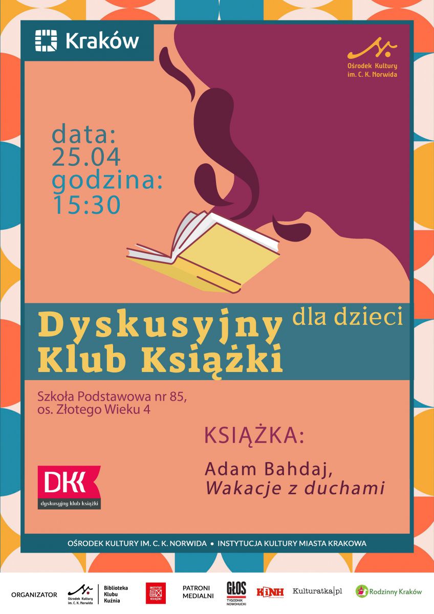 Podczas kwietniowego spotkania Dyskusyjnego Klubu Ksiki dla dzieci uczestnicy bd rozmawia na temat ksiki Adama Bahdaja, zatytuowanej Wakacje z duchami.