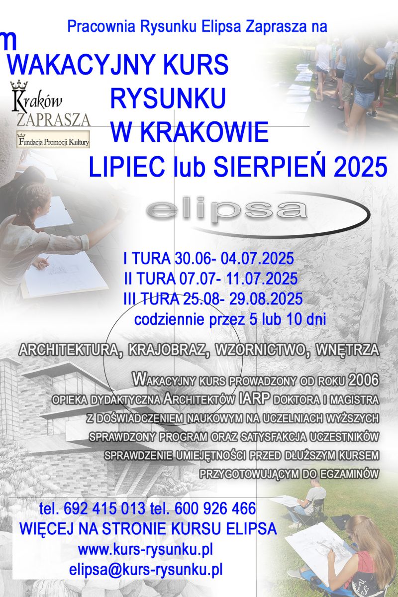 Zapraszamy osoby zainteresowane kandydowaniem na studia lub sprawdzeniem się w meandrach rysunku odręcznego w trakcie kursu wakacyjnego 2025 w lipcu lub w sierpniu. Zajęcia pozwalają nie tylko poznać arkana tej pięknej sztuki w zakresie architektury i projektowania oraz również zwiedzić Kraków i ciekawe miejsca w mieście. W trakcie zajęć planujemy plenery m.in. w Parku Jordana, na Wawelu, Plantach, Ogrodzie Botanicznym oraz lokalizacjach Starego Miasta .
