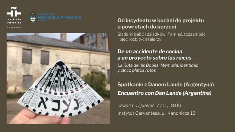 Instytut Cervantesa w Krakowie serdecznie zaprasza na spotkanie z Danem Lande z Argentyny, twórcą projektu „La Ruta de las Bobes” (Śladami babć i dziadków) nagrodzonego przez Ministerstwo Kultury Miasta Buenos Aires.