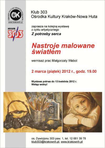 Klub 303 Orodka Kultury Kraków-Nowa Huta (os. Dywizjonu 303 1) zaprasza 2 marca (pištek) 2012 r. o godz. 19.00 na wernisaż prac Małgorzaty Waboł.