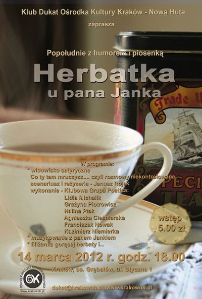 Klub Dukat Orodka Kultury Kraków-Nowa Huta (ul. Styczna 1) zaprasza 14 marca (roda) 2012 r. o godz. 18.00 na program satyryczny Co ty tam mruczysz