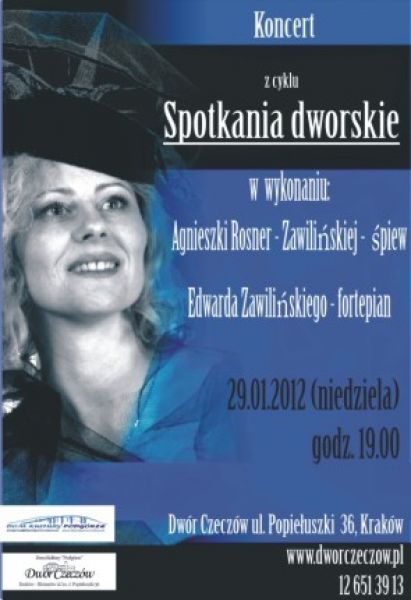 Zapraszamy na wieczór kabaretowy z cyklu „Spotkania Dworskie” z udziałem Agnieszki Rösner-Zawilińskiej – œpiew oraz Edwarda Zawilińskiego - fortepian.