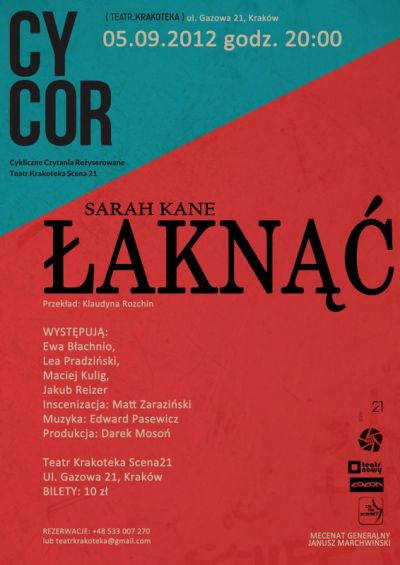 oraz sprzedaż biletów: na 30 min przed każdym spektaklem w siedzibie teatru ul. Gazowa 21