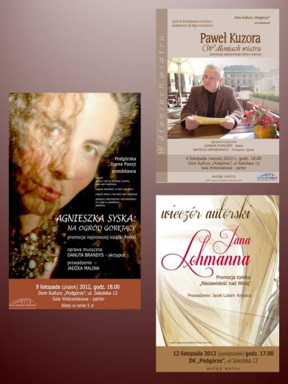 Ostatnim spotkaniem literackim (12.11) w Domu Kultury Podgórze będzie wieczór poezji Jana Lohmanna i promocja tomiku : Niezawisłoć nad Wisłš. Wieczór poprowadzi Jacek Lubart-Krzysica.
