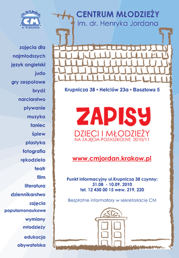 Szczegółowych informacji na temat zajęć szukaj na naszej stronie www.cmjordan.krakow.pl