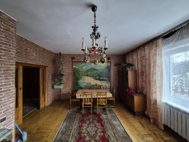 Dom o funkcjonalnym układzie pomieszczeń z dużym potencjałem aranżacyjnym, idealny zarówno jako dom mieszkalny, całoroczny , jak i wakacyjna rezydencja czy inwestycja pod wynajem. W podpiwniczeniu budynku znajdziemy pomieszczenia gospodarcze i kotłownię. Na parterze znajduje się salon z kamiennym kominkiem i wyjściem na balkon, kuchnia, spiżarka, wc z prysznicem , hol i pokój. Obszerne piętro mieści 4 pokoje, łazienkę oraz pomieszczenie gospodarcze. Przy budynku znajduje się garaż nad którym znajdują się dwa pokoje. Parter budynku wykonany jest z pustaka i cegły, piętro z bali modrzewiowych. Okna PCV. Dach kryty blachą.