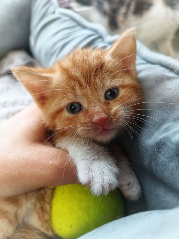 Został znaleziony razem ze swoim rodzeństwem w lesie. Kociaki nie są płochliwe, więc możemy tylko podejrzewać w jaki sposób się tam znalazły...