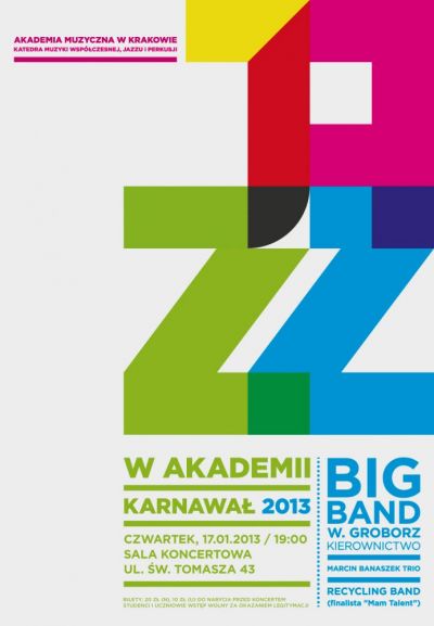 Już 17 stycznia w Sali Koncertowej Akademii Muzycznej BIG BAND Akademii Muzycznej w Krakowie, którego prowadzeniem od wielu lat zajmuje się doświadczony bandleader , pianista jazzowy i kompozytor Wojciech Groborz, wystąpi wraz z Banaszek/ Południak/ Stankiewicz TRIO oraz Recycling Band ( finalista programu „Mam talent”).