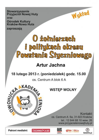 Stowarzyszenie Przyjaciół Nowej Huty oraz Ośrodek Kultury Kraków-Nowa Huta zapraszają na kolejny wykład w ramach Nowohuckiej Akademii Seniora.