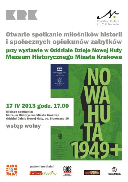 Otwarte spotkanie Społecznych Opiekunów Zabytków poświęcone historii i zabytkom Krakowa odbędzie się przy najnowszej wystawie w Muzeum Historycznym Miasta Krakowa Oddział Dzieje Nowej Huty.