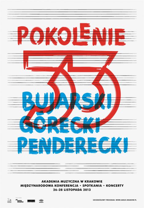 W związku z przypadającym w tym roku Jubileuszem 80-lecia urodzin trzech wielkich kompozytorów związanych z Akademią Muzyczną w Krakowie, w dniach 26-28.11.2013 r. odbędzie się międzynarodowa konferencja „... Pokolenie ’33 Bujarski, Górecki, Penderecki”. Twórczość Krzysztofa Pendereckiego, Zbigniewa Bujarskiego (profesorów Akademii Muzycznej w Krakowie) i Henryka Mikołaja Góreckiego (doktora honoris causa naszej uczelni) stanie się przedmiotem refleksji teoretycznej podczas sesji naukowej. Referaty wygłoszą: Renata Borowiecka, Regina Chłopicka, Magdalena Chrenkoff, Agnieszka Draus, Krzysztof Droba, Małgorzata Gąsiorowska, Ann Gebuhr, Robert S. Hatten, Małgorzata Janicka-Słysz, Eva Maria Jensen, Katarzyna Kaczmarczyk, Kinga Kiwała, Teresa Malecka, Anna Nowak, Anna Oberc, Małgorzata Pawłowska, Kazimierz Płoskoń, Leszek Polony, Ewa Siemdaj, Marcin Strzelecki, Krzysztof Szwajgier, Katarzyna Szymańska-Stułka, Mieczysław Tomaszewski, Ewa Wójtowicz, Adam Zagajewski.