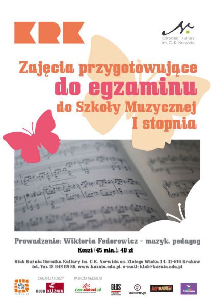 Zapraszamy do Klubu Kuźnia na zajęcia indywidualne, prowadzenie: Wiktoria Federowicz - muzyk, pedagog. Koszt (45 min.): 40 zł