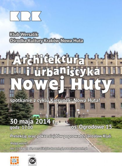 Klub Wersalik Ośrodka Kultury Kraków-Nowa Huta (os. Ogrodowe 15) zaprasza 30 maja 2014 r. o godz. 17.00 na kolejne spotkanie z cyklu Kierunek: Nowa Huta!