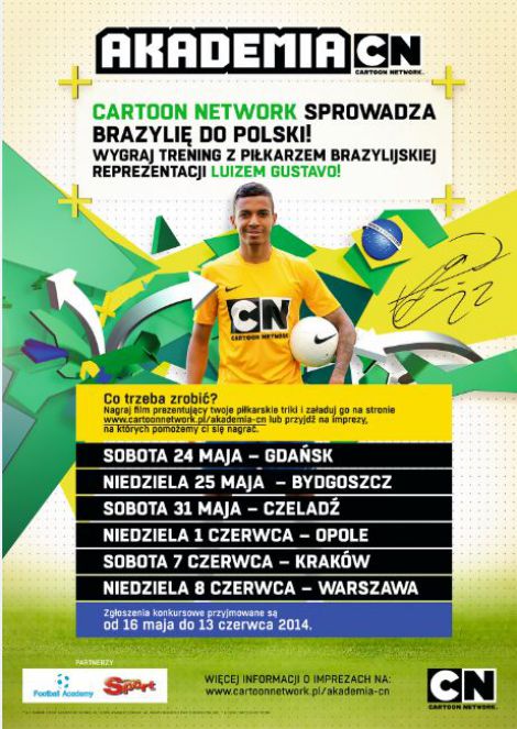 Stacja Cartoon Network i Football Academy, ogólnopolska sieć elitarnych szkółek piłkarskich dla dzieci, zapraszają na nagrania do konkursu „Akademia Cartoon Network - Futbol”. Konkurs, w którym główną nagrodą jest sesja treningowa z piłkarzem brazylijskiej reprezentacji narodowej – Luizem Gustavo Diasem, polega na nagraniu minutowego wideo prezentującego piłkarskie umiejętności uczestników. Do konkursu zgłaszać mogą się dzieci w wieku od 6-15 lat.