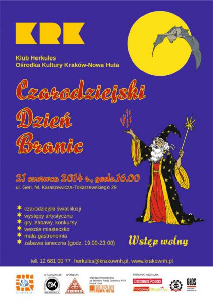 Klub Herkules Ośrodka Kultury Kraków-Nowa Huta (ul. gen. M. Karaszewicza-Tokarzewskiego 29) zaprasza 21 czerwca 2014 r. w godz. 16.00-23.00 na rodzinne obchody Dnia Branic w iście czarodziejskim wydaniu.