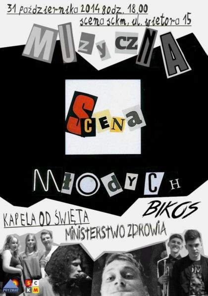 Staromiejskie Centrum Kultury Młodzieży zaprasza 31 października o godz. 18.00 na trzy koncerty. Zagrają BiKOS, Ministerstwo Zdrowia oraz Kapela od Święta.