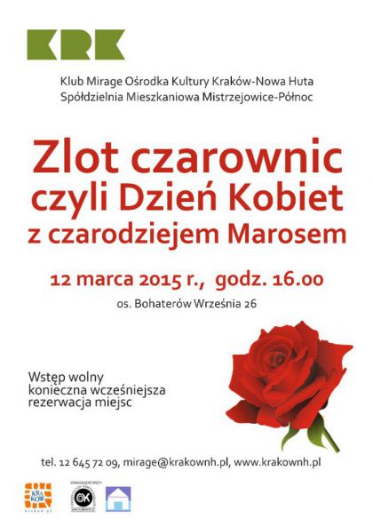 Czarownice, czarodziejki, czarujące tak często mówi się o kobietach w zależności w jakim nastroju jest mężczyzna , który o nich opowiada. Tym razem to on będzie czarował uwodzicielskim spojrzeniem, błyskiem w oku, nienagannymi manierami a przede wszystkim głosem. W świat piosenek o kobietach i dla kobiet zabierze uczestniczki spotkania Czarodziej Maros. Dla pań, które przyjdą w czarodziejskim przebraniu przewidziano upominki. Zapraszają: Klub Mirage Ośrodka Kultury Kraków-Nowa Huta oraz Spółdzielnia Mieszkaniowa "Mistrzejowice- Północ".