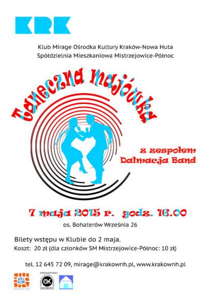 Jak powitać najpiękniejszy miesiąc w roku? Oczywiście tanecznym krokiem. Klub Mirage Ośrodka Kultury Kraków-Nowa Huta (os. Bohaterów Września 26) oraz Spółdzielnia Mieszkaniowa Mistrzejowice-Północ zapraszają na zabawę taneczną dla seniorów z zespołem Dalmacja Band z okazji powitania wiosny 7 maja o godz. 16.00. Taniec to doskonała forma gimnastyki. A jeśli tej gimnastyce towarzyszy jeszcze śmiech, muzyka na żywo i dobre towarzystwo to jest to gwarancja udanej zabawy i dobrego samopoczucia. Bilety dostępne w Klubie do 2 maja.