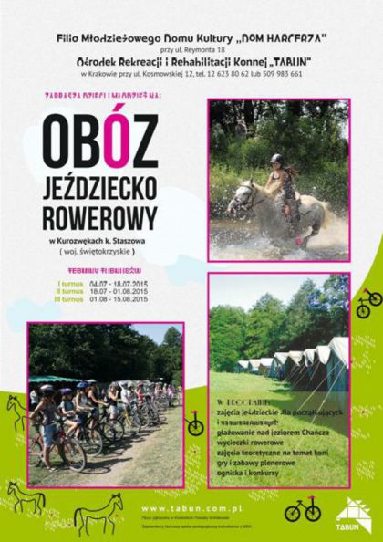 w przedziale wiekowym 10 - 19 lat lubiących konie, naturę , przygodę i aktywny wypoczynek na OBÓZ JEŹDZIECKO – ROWEROWY w Kurozwękach k. Staszowa