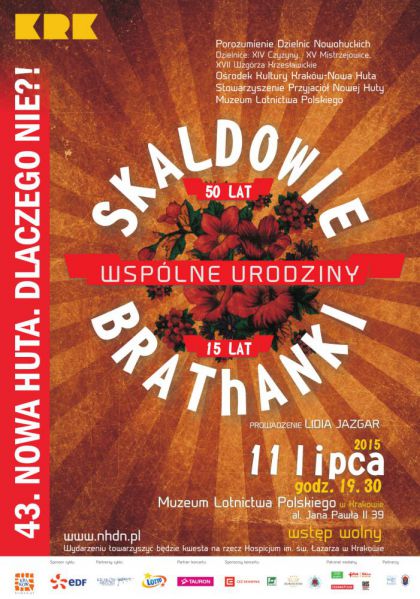 11 lipca br. w Muzeum Lotnictwa Polskiego odbędzie się 43. koncert z cyklu Nowa Huta. Dlaczego Nie?!. Tego dnia, po raz pierwszy razem na jednej scenie wystąpią: legenda polskiej sceny muzycznej zespół Skaldowie oraz folkowy top topów grupa Brathanki. Na muzyczną ucztę w klimatycznym otoczeniu lotniczych ekspozycji zapraszają Porozumienie Dzielnic Nowohuckich: Dzielnice XIV Czyżyny, XV Mistrzejowice, XVII Wzgórza Krzesławickie, Ośrodek Kultury Kraków-Nowa Huta, Stowarzyszenie Przyjaciół Nowej Huty oraz Muzeum Lotnictwa Polskiego.