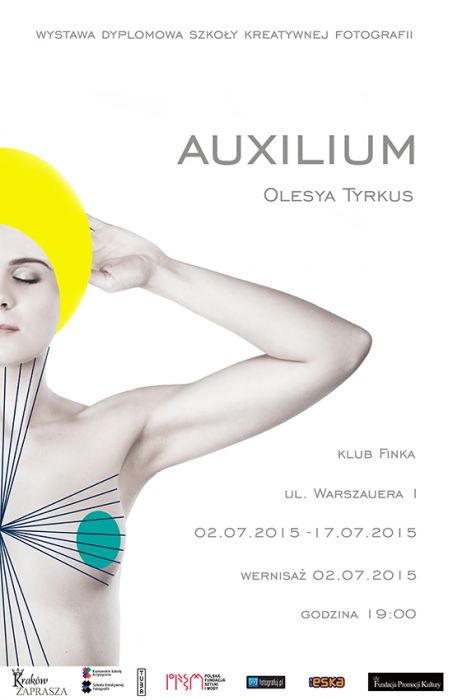 „Do powstania cyklu „Auxilium” zainspirowała mnie obecna sytuacja na Ukrainie. Użyta przeze mnie na zdjęciach symbolika kobiety nawiązuje do Ukrainy bezsilnej, beztroskiej, zagubionej, niewinnej. Punktem wyjścia do portretów stały się wizerunki Maryi (ikony), matki całego świata, cierpiącej w obliczu krzywdy i niesprawiedliwości. Ból w moich obrazach pokazałam za pomocą wartości graficznych (ikonek), które naniosłam na ciała modelek. Kolory figur geometrycznych nawiązują do barw narodowych mojej ojczyzny.